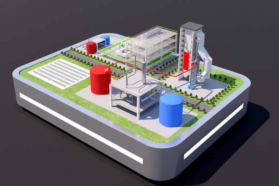 世界首台(套)应用锅炉耦合烟气熔盐储能项目——国能廊坊热电350兆瓦机组烟气熔盐储能示范项目储热系统概念图。