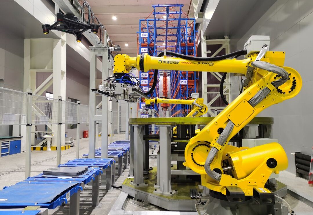 “这就是我们的智能化叠片间机器人工作站。它仅需一人操作,就可以替代原来需要5到6个人完成的重体力、重复性的劳动。”电机公司智能制造工艺部副经理魏方锴介绍着数字化转型的新变化。