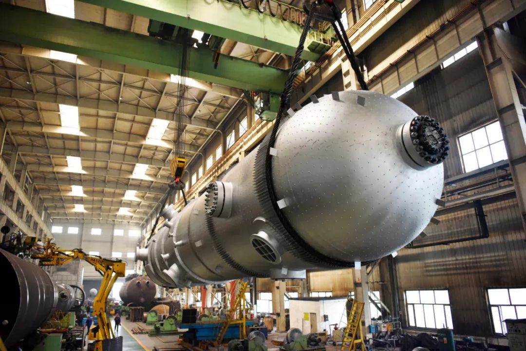 锅炉公司充分利用独有的应力分析设计资质,成功研制出日投煤量3000吨神华榆林CTC-1水煤浆气化炉及日投煤量3300吨内蒙古汇能煤化二期四喷嘴水煤浆气化炉,连续刷新日投煤量世界纪录,推动煤炭资源清洁利用。成功研制出国产化首批神华榆林CTC-1项目两台戴维甲醇反应器,更是打破了国外公司长期垄断的局面。承制的盛虹炼化一体化项目辐射废锅、蒸汽过热器采用煤碳清洁高效利用最为先进的技术路线,其回收显热可带来十分可观的经济效益,具有广阔的应用前景。