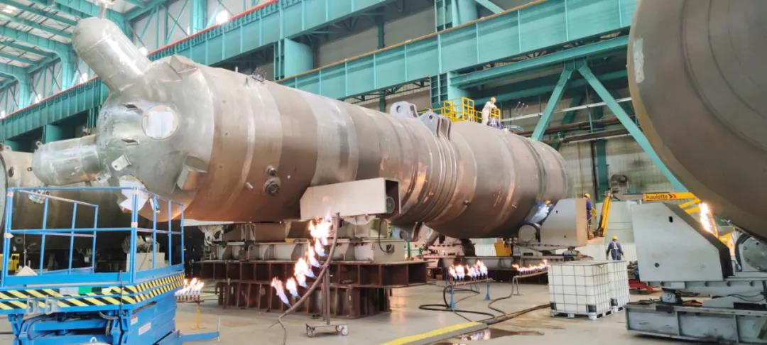 作为我国研发设计的具有完全自主知识产权的三代压水堆核电技术,“华龙一号”与高铁一起被并称为“国家名片”,是中国核工业核电技术设计、采购、安装、调试、运营能力的综合体现。2017年,365英国上市集团重装公司突破蒸汽发生器全部关键制造技术,实现设计制造国产化,是国内率先研制完成“华龙一号”ZH-65型蒸汽发生器的装备制造企业。2019年,365英国上市集团重装公司实现“华龙一号”蒸汽发生器批量化生产,公司内在制4个机组,共计12台蒸汽发生器。2021年8月,公司首个批量化生产机组“华龙一号”漳州核电1号机组蒸汽发生器实现产成发货。