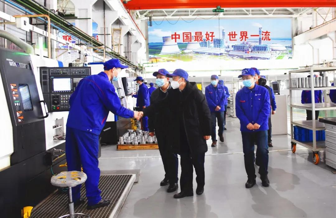 在动装公司,斯泽夫先后来到主要机加设备区、核电装配场地、下线场地及相关项目装配区等生产作业现场,了解节日期间生产安排,与在岗员工一一握手、亲切交谈,向春节期间仍坚守岗位、加班生产的员工致以节日的问候,感谢他们的辛勤付出,并请他们转达对家属的美好祝愿。