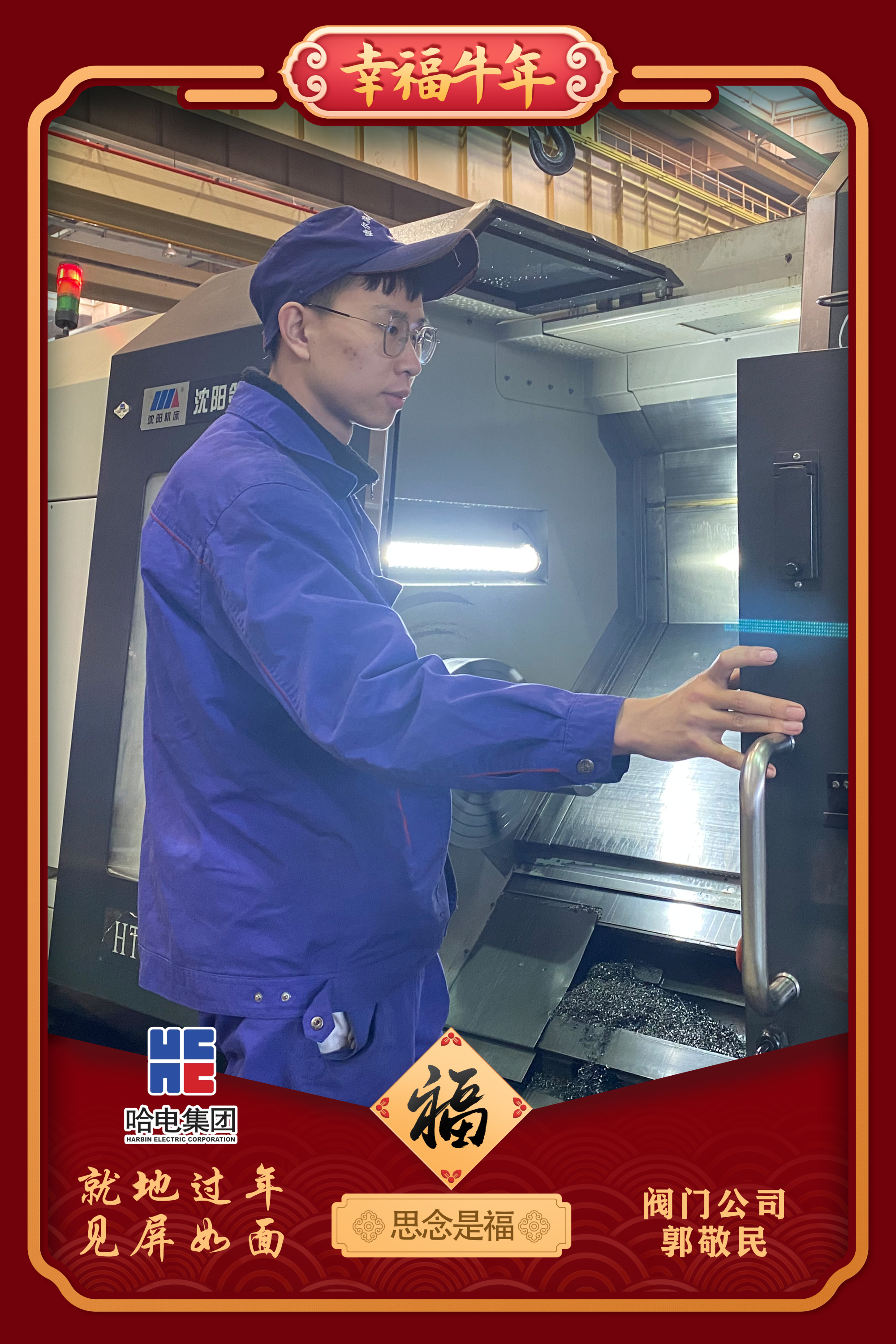 我叫郭敬民,来自黑龙江省虎林市,是阀门公司一车间的一名数控车工。为了把疫情防控做到位,使这个“年”过得安心,很多老家不在本地的职工响应国家号召,舍小家为大家,选择了留在哈尔滨“就地过年”,而我也是其中的一员。这是我第一次不能与父母一起过新年,所以我选择在大年三十当天,同父母视频给父母“云”拜年,休息两天后,我便开始返岗加班,按照公司的计划完成工作任务。