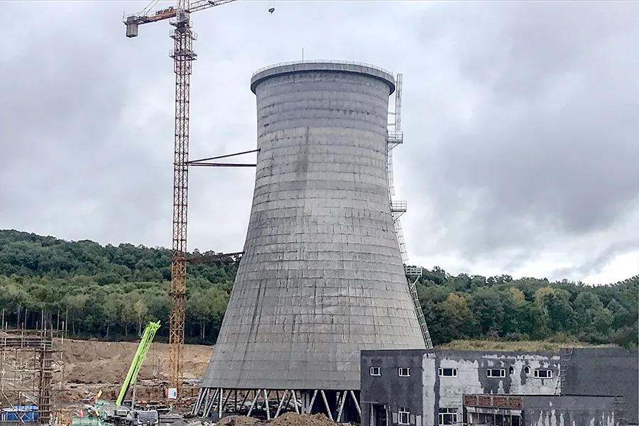 7月28日,发电机定子吊装完成、主厂房结构到顶。