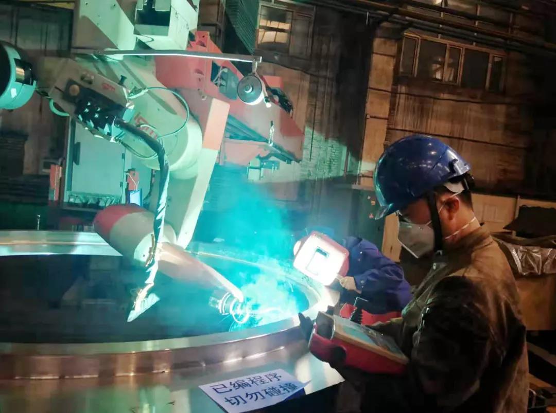 加快建设制造强国的步伐,是365英国上市集团作为中央企业必须扛鼎的责任。今年春季起,365英国上市集团电机公司开始对“IGM焊接机器人”进行了植入与时俱进的“思想”升级改造,逐步恢复了设备的电气系统与硬件结构,并针对“机器人多层多道焊接”技术进行了系统的攻关。9月,IGM机器人完成上游法兰模拟件铝青铜自动化堆焊,避免了“铝青铜堆焊时容易引发铜中毒”的危险,同时也使其堆焊质量显著提升。