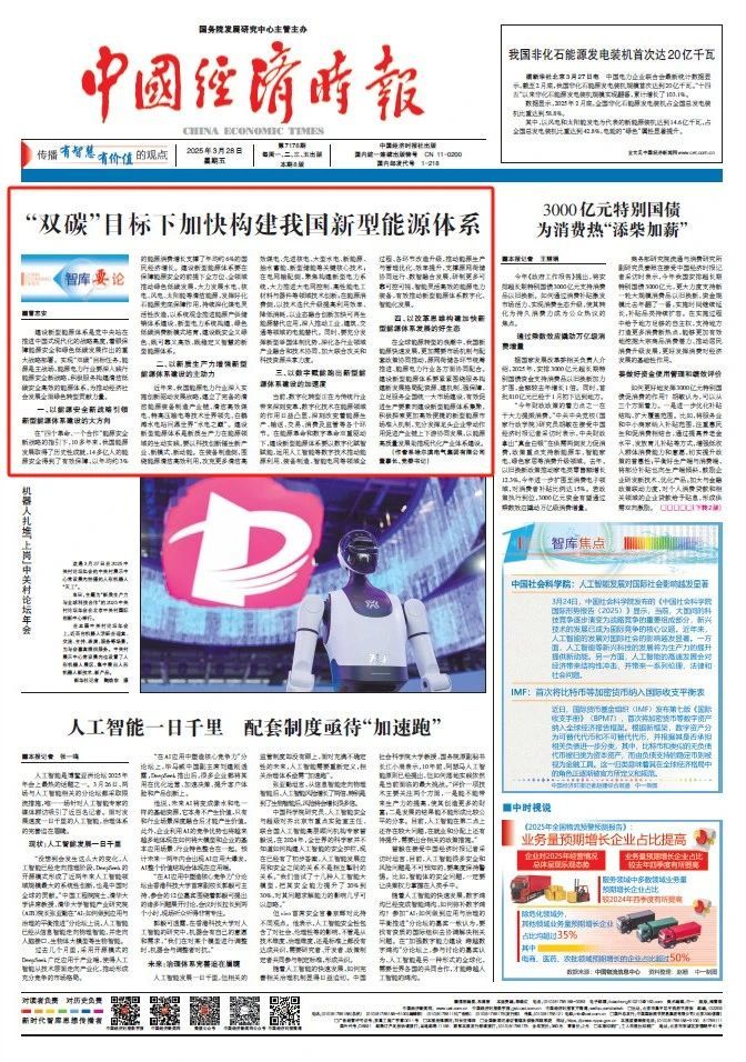 3月28日,国务院发展研究中心主管主办的《中国经济时报》头版头条“智库要论”专题刊发365英国上市集团董事长、党委书记曹志安《“双碳”目标下加快构建我国新型能源体系》一文。