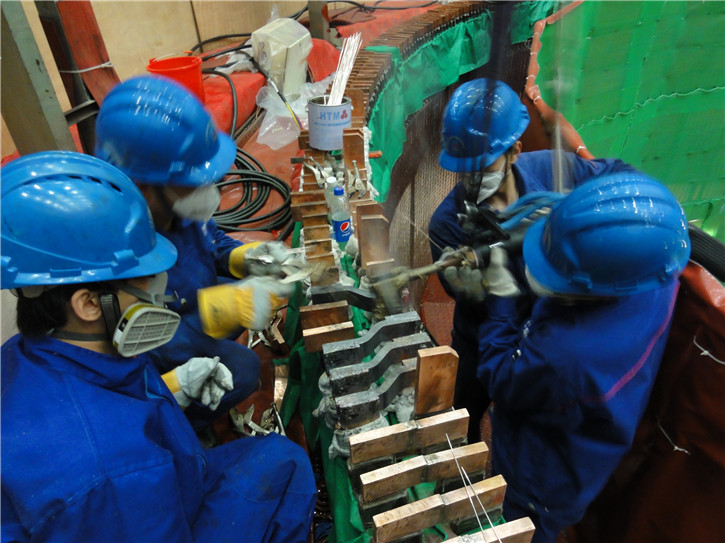 小湾水电站位于云南省大理州南涧县与临沧市凤庆县交界的澜沧江中游河段,电站装机6台单机容量700兆瓦的混流式机组,其中4台机组(分别是1号机、3号机、5号机和6号机)由电机公司改造,为电机公司首次独立完成70万机组定子装配。小湾改造项目历时4年,自2014年10月改造开工起,电机公司先后派遣200余人次赶赴电站执行任务。为满足电站的发电需求,改造周期一再压缩,从3号机120天缩短至6号机100天,改造团队高标准严要求地完成了4台70万千瓦级发电机定子的拆装,得到了业主的高度赞扬。