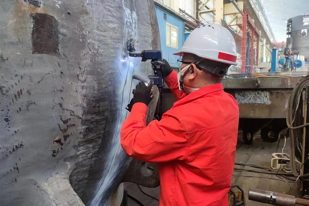 10月29日,采用双机器人工作站全自动化焊接的缙云抽水蓄能电站6号机球阀阀体,在焊缝焊后无损探伤一次合格的基础上,退火后无损探伤再次“零缺陷”通过验收,实现了“自动化焊接全过程零返修”的既定目标,标志着电机公司在大型结构件焊接自动化生产领域取得了重大突破。