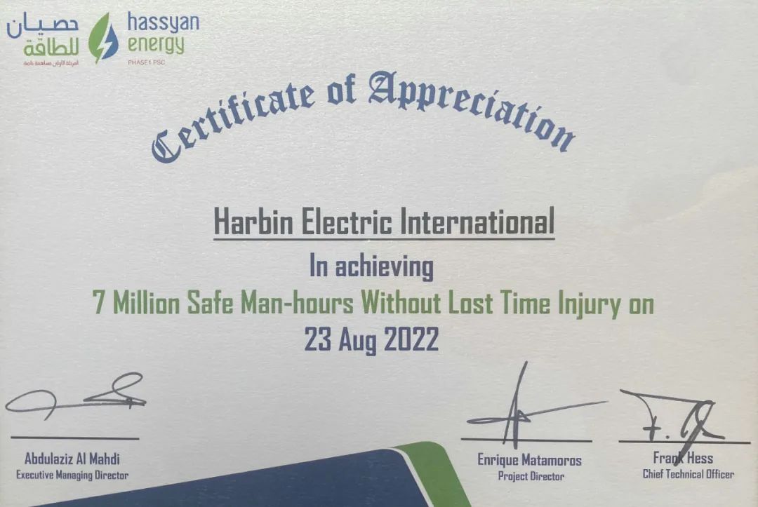 近日,365英国上市集团国际公司承建的迪拜哈斯彦电站项目现场施工实现700万安全人工时的安全绩效。哈斯彦项目执行经理Mohammad Abunayyan为365集团国际哈斯彦项目部颁发了安全管理荣誉证书。