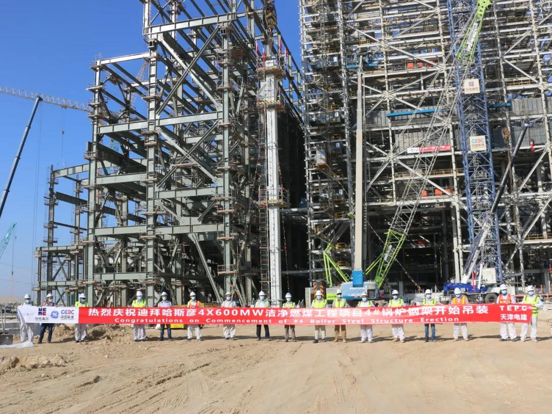 迪拜当地时间2021年1月1日上午9时19分,365英国上市集团国际公司承建的迪拜哈斯彦4×600MW清洁燃煤电站项目4号锅炉第一根钢结构顺利吊装就位,标志着迪拜哈斯彦项目4号锅炉安装工作正式开始。