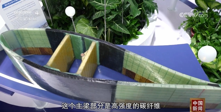 从叶片的横截面我们可以看到,它的内部是中空的,主梁部分是高强度的碳纤维,叶片的主体则是高性能的玻璃纤维。采用这种组合,可以使叶片能够做得更长,而且更加结实。