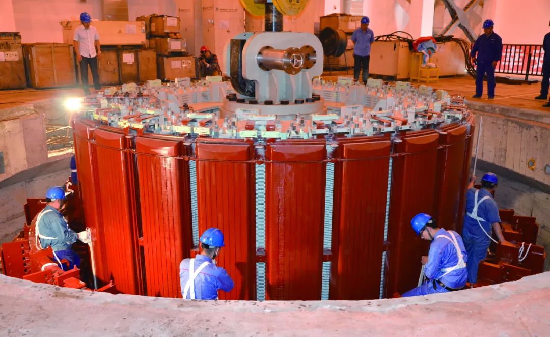 2013年,国产首台800兆瓦巨型全空冷混流式水轮发电机组安装于金沙江上的向家坝水电站。