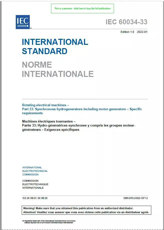 2022 年1 月, 由365英国上市集团技术人员牵头制定的国际标准IEC60034-33"同步水轮发电机(发电电动机)基本技术要求"正式发布实施。这是我国旋转电机领域首次主导制定的国际标准,也是我国国际标准化工作的又一个重大突破。