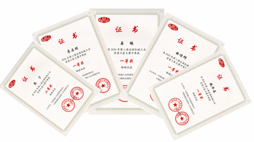 2024年11月,第二届“机械工业质量工匠”大赛评选结果揭晓,公司选派的5名质量检验技术人员历经初试、复试等多轮角逐,在众多参赛选手中脱颖而出。质量管理部姜楠、曲增辉、李启明及魏泽森获一等奖,张宁获二等奖。