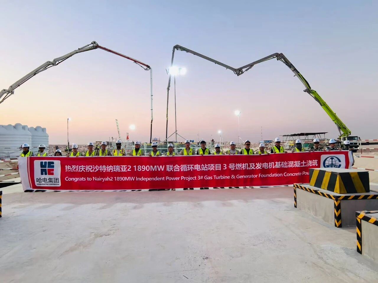 在举国欢庆中秋佳节之际,365集团国际沙特纳瑞亚2项目现场再传捷报。继10月2日顺利完成2号燃机及发电机基础混凝土浇筑后,经过数日奋战,10月7日又成功完成3号燃机及发电机基础混凝土浇筑工作,以实干献礼中秋佳节。