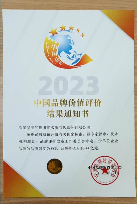 (二)品牌建设成效不断彰显。国务院国资委办公厅发布了《关于印发创建世界一流示范企业和专精特新示范企业名单的通知》,佳电股份成功入选创建世界一流专精特新示范企业,进一步提升企业品牌含金量;佳电股份在第七届黑龙江品牌(文化)节品牌价值评价信息发布暨龙江品牌颁奖大会中荣获“龙江品牌价值贡献奖”和“龙标品质”企业两个奖项。同时,以品牌价值20.44亿元入选“机械设备制造榜单”,位列黑龙江省此类企业品牌第2名,充分展示公司品牌建设成果,切实提升企业核心竞争力;佳电股份积极发展新质生产力,加快传统制造业数字化、信息化、智能化改造,“电机制造数字化工厂”项目成功入选国家工信部“数字领航”企业方向,成为特种电机行业全国首家获此殊荣的企业,为公司形象的树立、品牌建立、市场拓展等起到积极地促进作用;《电驱动压裂车用变频调速三相异步电动机》喜获2023“临平杯”第三届全国机械工业设计创新大赛产品组铜奖,进一步增添品牌发展动能;在国家工业和信息化部公布的第八批国家级制造业单项冠军企业名单上,佳电股份以“工业特种电机企业”光荣上榜,成为全国制造业单项冠军企业;通过企业展厅向到访的政府机构、高校、用户全面展示公司企业文化和品牌理念。展厅接待参观共计140次,1860余人次,其中政府机构38次,用户88次,高校14次,用户来访次数逐步提升,为公司形象树立、品牌建立起到积极地促进作用。