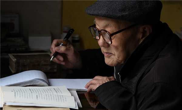 张富清在家看书学习(3月31日摄)。新华社记者 程敏 摄