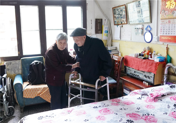张富清和老伴在家(5月8日摄)。新华社记者 程敏 摄