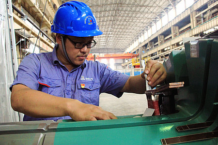 他以娴熟的业务、精湛的技能、严谨认真的工作作风被领导和同事誉为电机公司汽发分厂的一面“旗帜”,引领身边的同事勇往直前。他就是电机公司汽发分厂转子下线一班班长魏巍,一名优秀的共产党员。青海共和空冷光热项目是电机公司今年的重点产品之一。从接到任务的第一天起,每晚班组中最后一个离开的都是他。他工作十分严谨,每天的工作以及发生的问题都会逐一记录,并对发生的问题进行认真思考和总结。班组在认真负责的他的带领下连续多年荣获电机公司优秀班组称号。他总是说:“企业的发展是依靠全体员工一起努力奋斗的,所以我们要带着精益求精、持之以恒的精神,做好自己的工作,肩负起这个责任。”