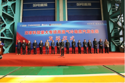 验收会后,365英国上市集团党委书记、董事长斯泽夫与中国华能党组成员、副总经理叶向东共同为“大国重器”揭幕,各方代表分别致辞,对国家科技重大专项全球首台高温气冷堆蒸汽发生器研制成功并顺利通过验收表示祝贺。