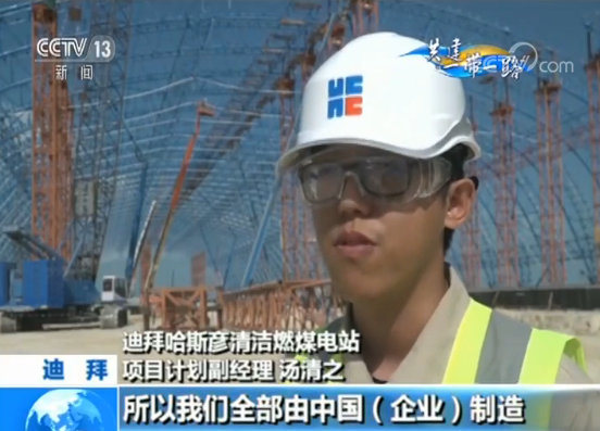 迪拜哈斯彦清洁燃煤电站项目计划副经理 汤清之:整个(储)煤场的(用钢量)是8100吨,这个(储)煤场需要我们在四个月的时间内全部加工完毕,然后发运完毕。这么大的制造产能,是整个阿联酋地区甚至中东地区都不具备的,所以我们全部由中国(企业)制造,然后(进行)预拼装,然后再发运过来,我们在现场来组装。